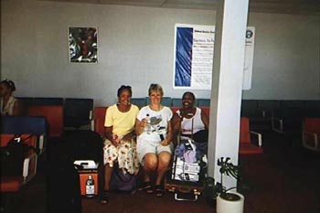 Evelyn, Melanie and Barri in San Juan on the way home